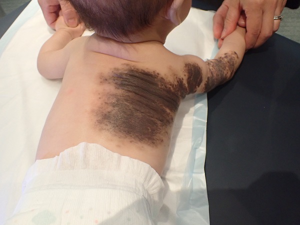 A congenital melanocytic nevus (CMN) is a benign mole made of pigment cells that is present at birth or appears within the first few weeks of life.